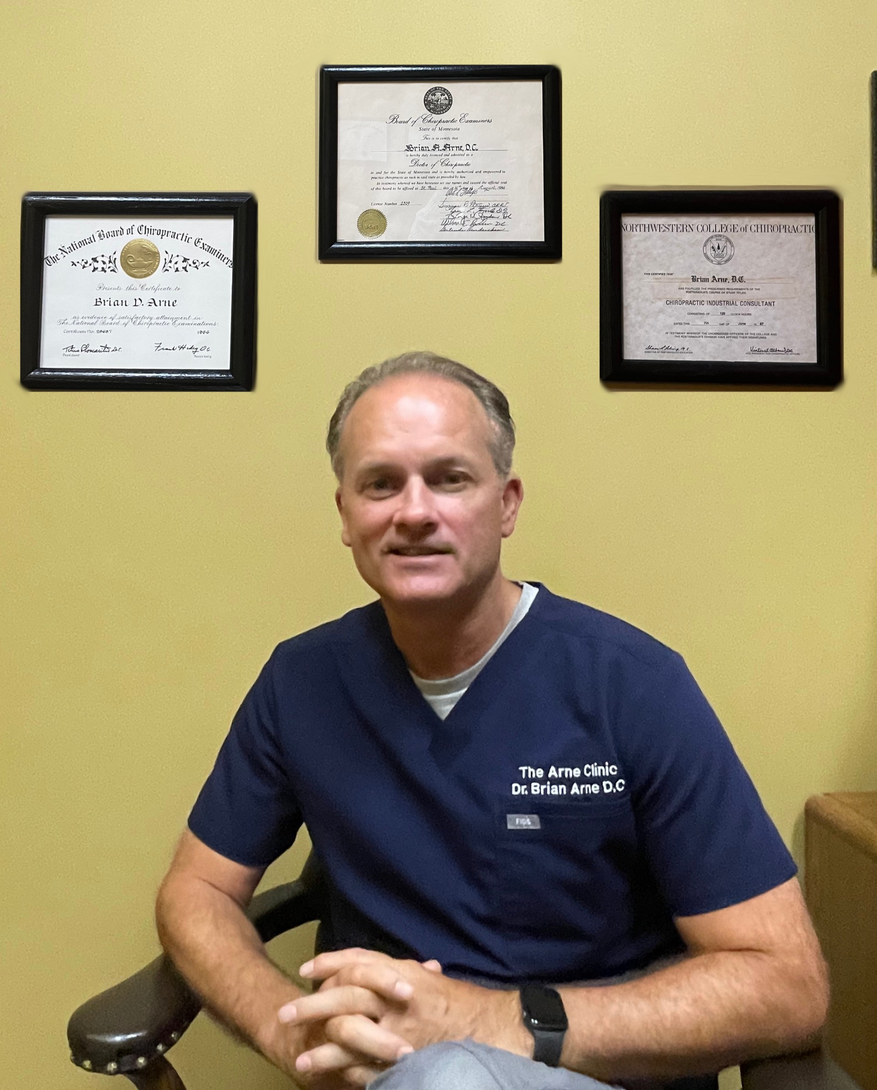 Dr. Arne completed his undergraduate studies at Whittier College in California and the University of Minnesota. He received his Doctorate in Chiropractic from Northwestern Health Science University in Bloomington, Minnesota in 1986.